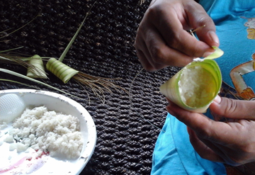 FILL UP WITH STICKY RICE COCONUT SUGAR AND BANANA